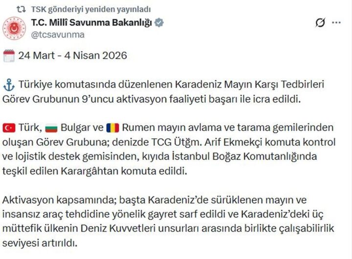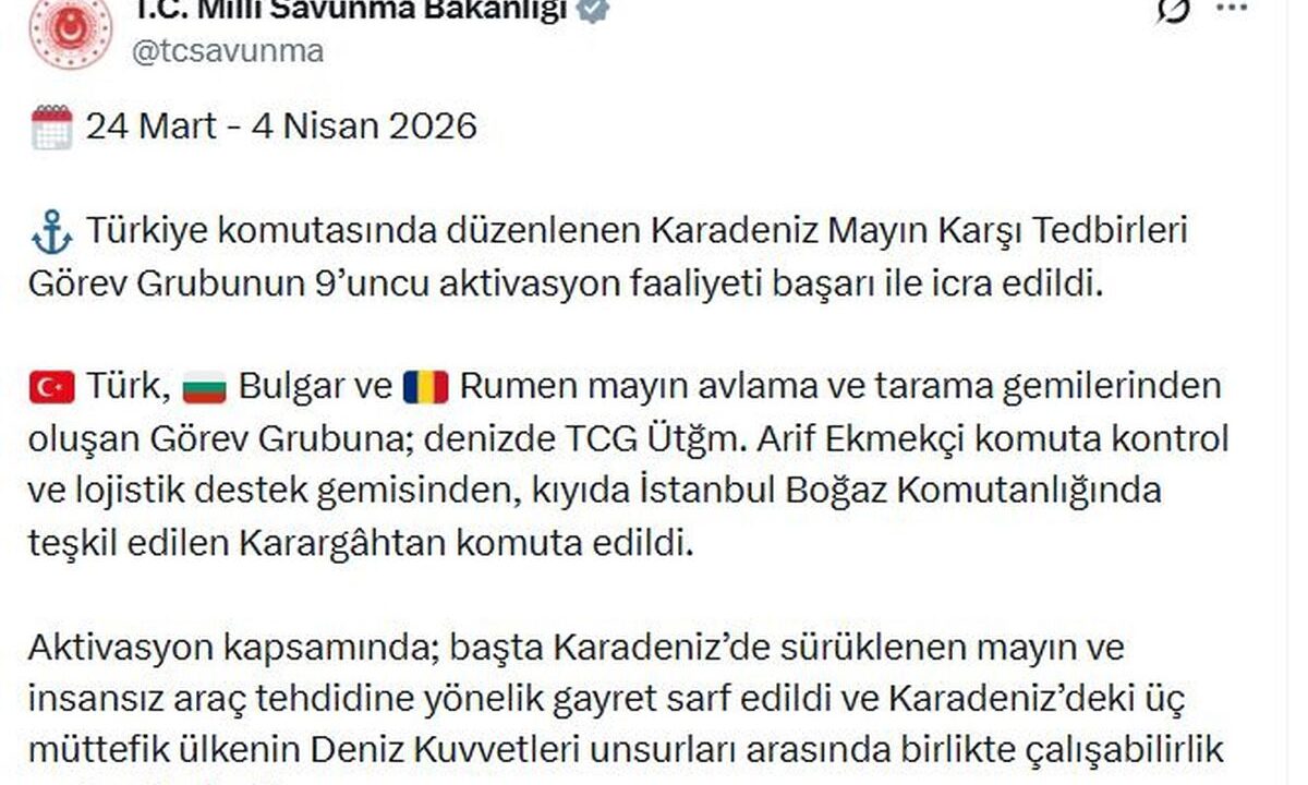 Eğitim Karadeniz’de Mayın Karşı Tedbirleri Başarıyla Gerçekleşti MSB, Türkiye komutasıyla düzenlenen 9. Mayın Karşı Tedbirleri faaliyeti başarıyla...