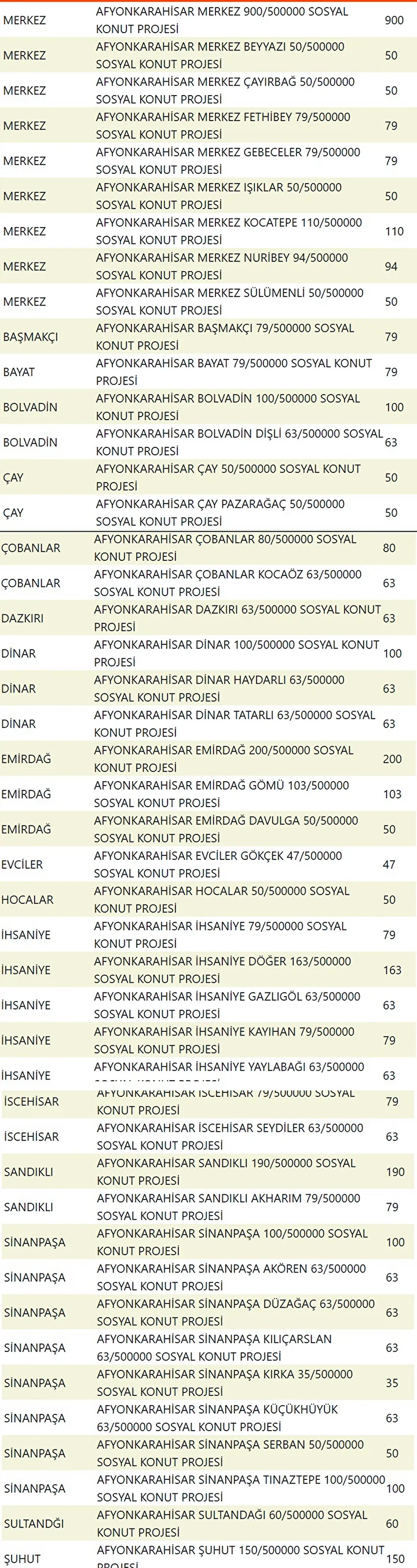 Konya’da 15 bin konut, Meram, Karatay, Selçuklu, Ahırlı, Akören, Akşehir, Altınekin, Beyşehir, Cihanbeyli, Çeltik, Çumra, Derbent, Derebucak, Doğanhisar, Emirgazi, Ereğli, Güneysınır, Hadim, Halkapınar, Hüyük, Ilgın, Kadınhanı, Karapınar, Kulu, Sarayönü, Seydişehir, Taşkent, Tuzlukçu, Yalıhüyük ve Yunak ilçelerinde yapılacak.