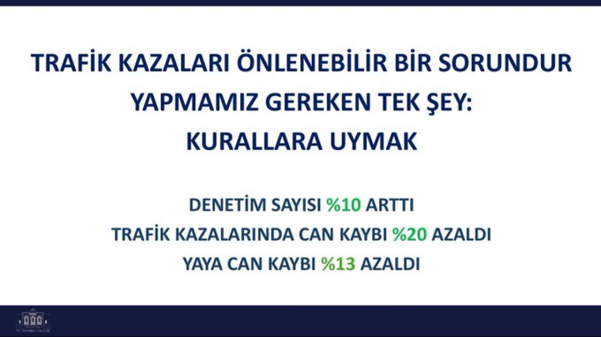 Bu anlayışla her geçen gün artan denetimler sayesinde 2025 yılının ilk 10 ayında geçen yılın aynı dönemine göre; Ölümlü kaza sayısı yüzde 18 azaldı. Can kaybı yüzde 20 oranında düştü. Yaya can kaybı %13 azaldı. Motosiklet kazalarında ise can kaybı yüzde 23 düştü.
