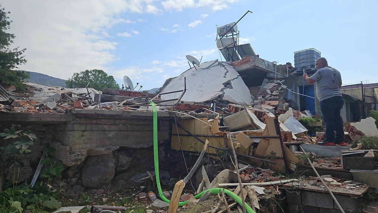 Patlamanın etkisiyle evin çatısı çökerken, evin yanındaki iki mermer işletmesinde de hasar meydana geldi.