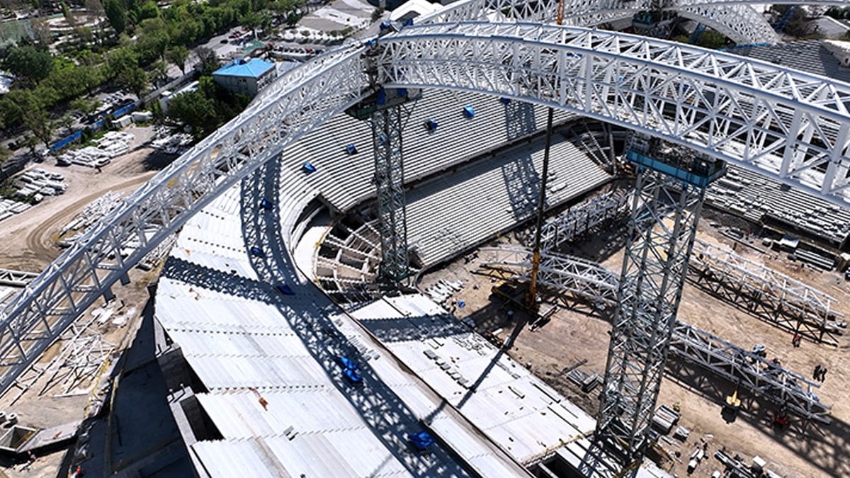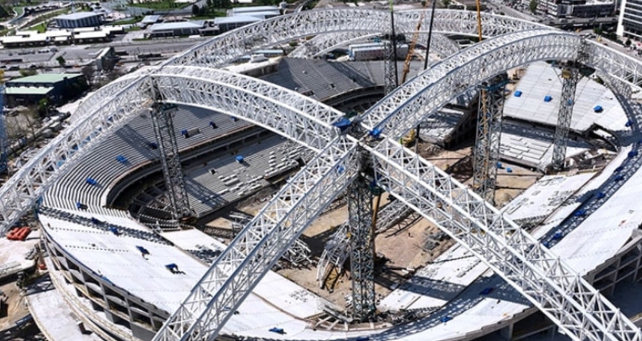 Neredeyse dörtte üçünün yapımı tamamlanan stadyum, ABD ve Çin’in ardından 285 metreyle dünyanın en uzun çelik çatı açıklığına sahip 3’üncü stadyum olacak.